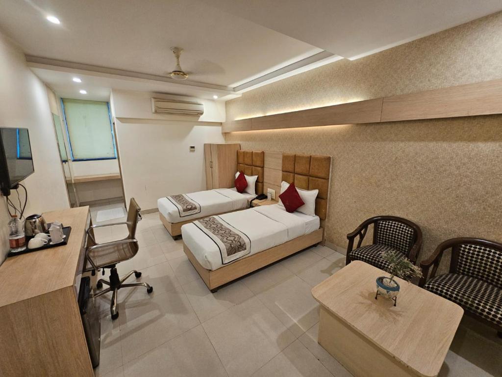 Hotel Horizon Plaza in Gwalior offers family rooms with air-conditioning, private bathrooms, city views, and work desks. Each room includes free toiletries, a shower, TV, dining area, electric kettle, and wardrobe. Guests can enjoy a restaurant serving pizza and a bar. The hotel features a lounge, lift, 24-hour front desk, concierge service, housekeeping, room service, and free on-site parking. This Property is a prestigious partner of Ash Roomz since 2024. Ash work with hotels,resorts,Villas,Service Apartments and other type of hotels in Madhya Pradesh.