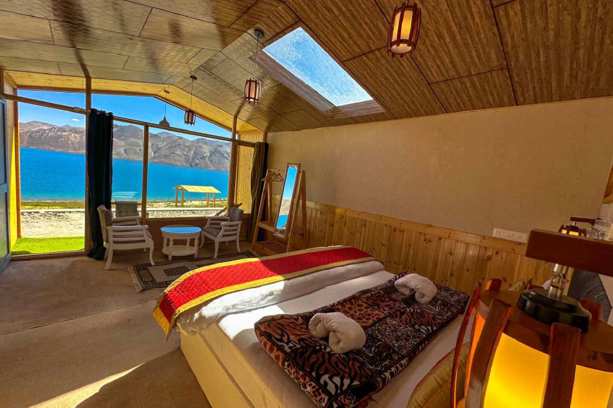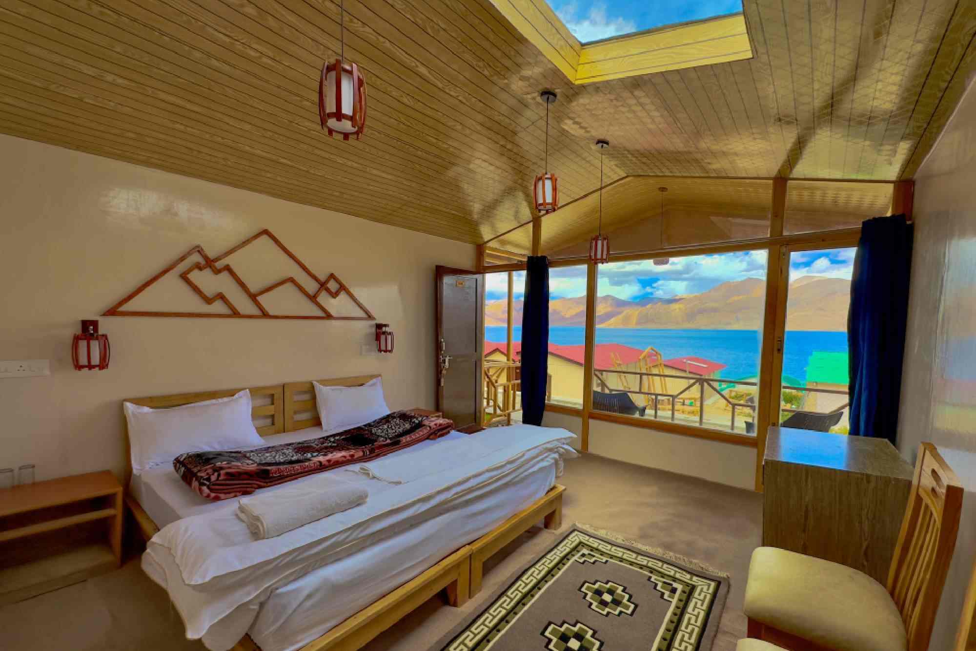 Pangong Heritage Resort is Conveniently located with in 100m distance from the beautiful Pangong lake, Spangmik. From the first glimpse of our beautiful location with the view of deep blue Pangong Lake, you’ll know why ourproperty is the premier vacation destination for your family and friends! First-rate facilities and amazing near by attractions make your staying experience excellent and memorable. Pangong Heritage Resort is situated at just 100-meter distance from the lake. All the rooms are equipped with all basic amenities like comfortable double bedding, well-carpeted floor, coffee table, hot running water, mobile charging facility, and clean hygienic attached washroom. A private veranda is attached to each tent & Cottages's front side to sit out and enjoy nature. This Property is a prestigious partner of Ash Roomz since 2024. Ash work with hotels,resorts,Villas,Service Apartments and other type of hotels in Ladakh. Book Hotels with ash" u look we book" for a safe and easy booking.