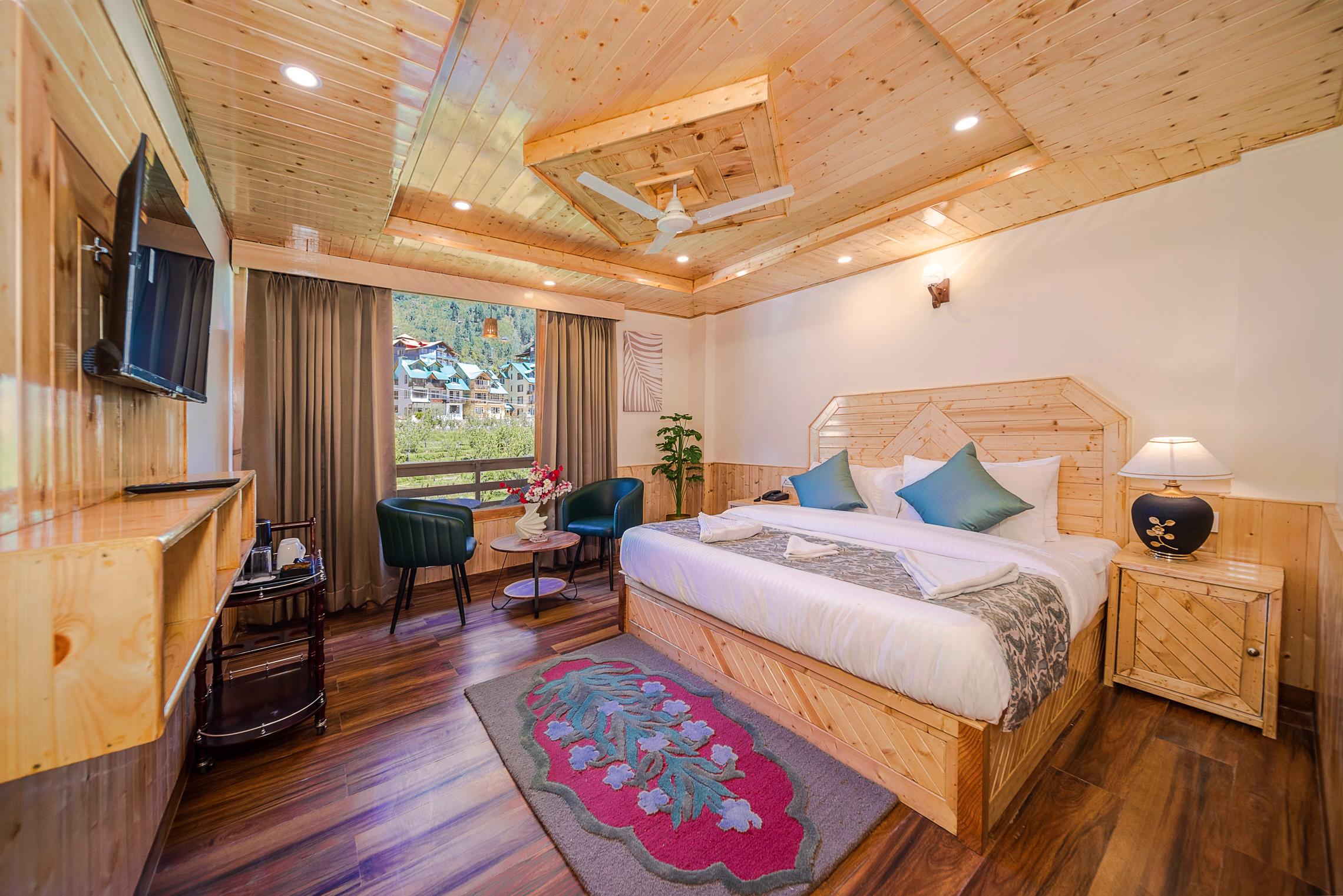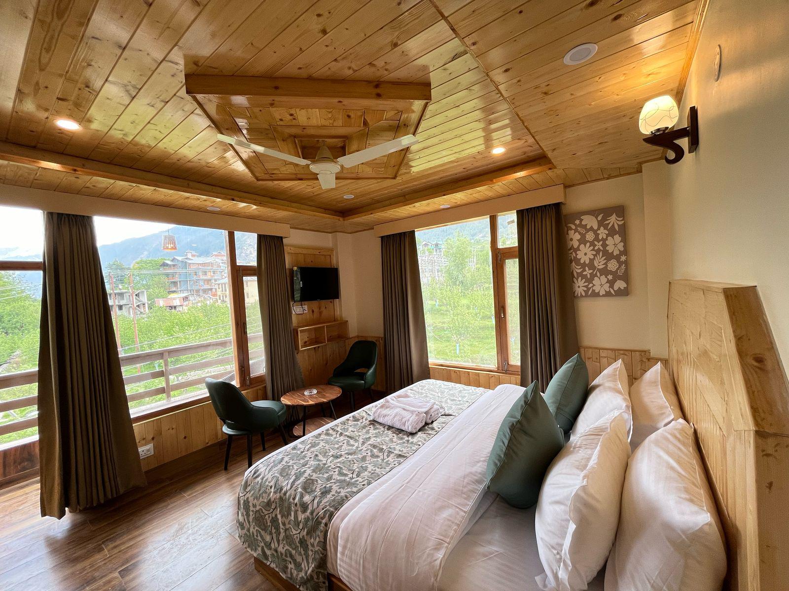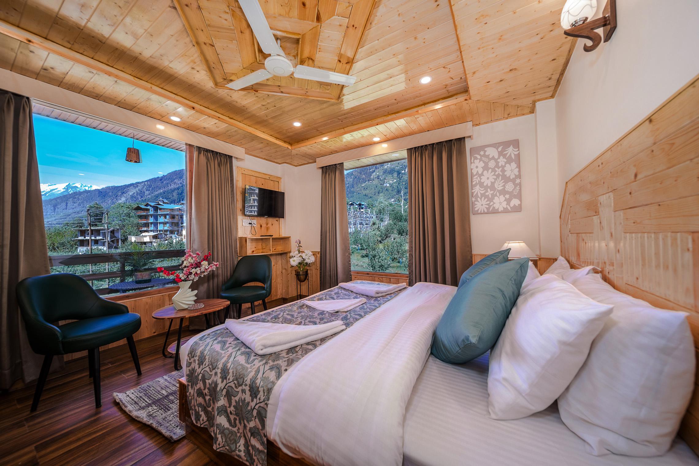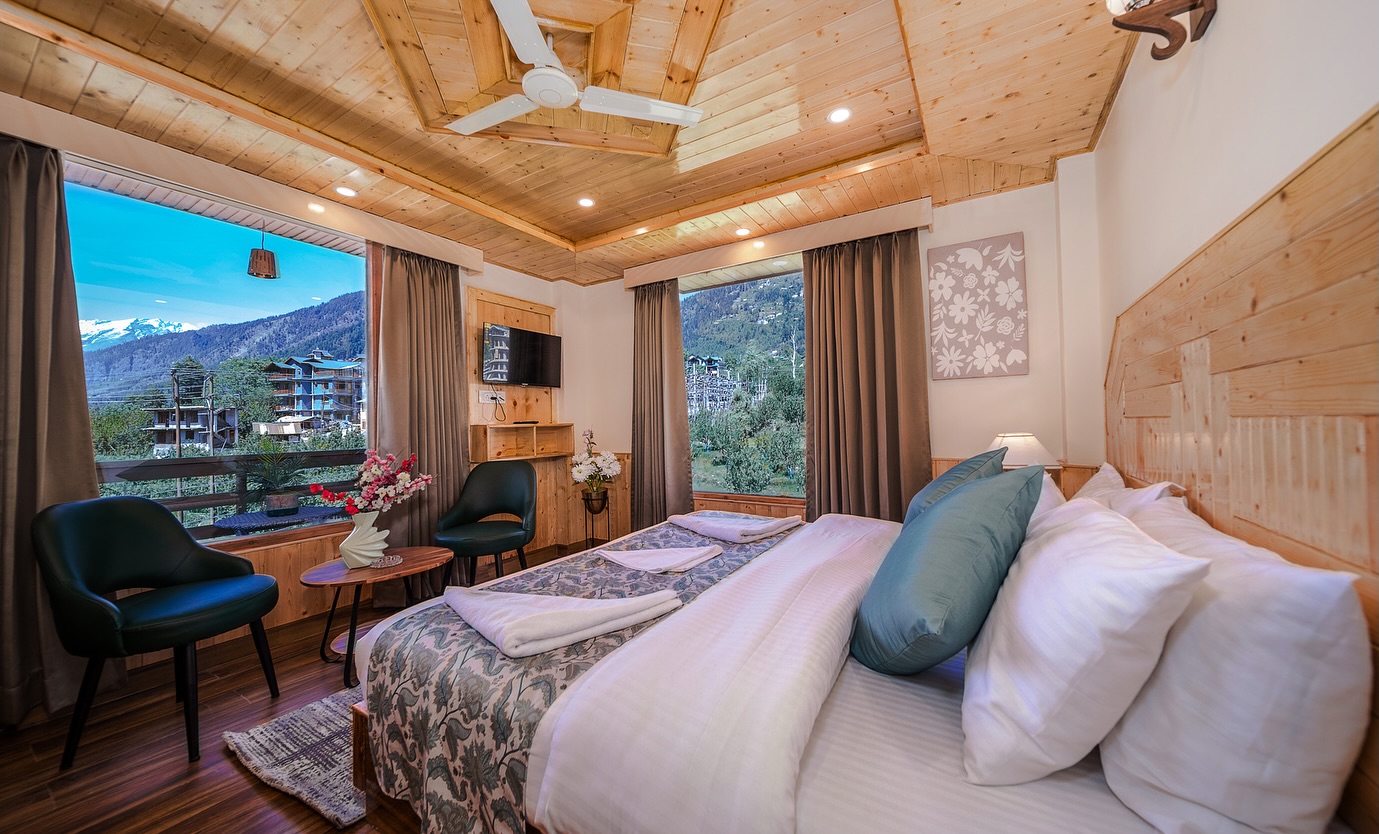 Sparklyn Serene a Premium Hotel in Manali. Celebrate love in the heart of the mountains at Sparklyn Serene. From cozy rooms with balcony views to romantic couple dances and unforgettable moments — this is where your honeymoon becomes a memory you’ll cherish forever. Sparklyn Serene offers a wonderful stay in the midst of all the serenity. With rooms decorated with all the modern amenities ranging from LED TVs to 24 Hours Hot/Cold Water supply, you get a direct view of the legendary Himalayan peaks sprinkled with snow and apple orchards till they disappear over the horizon. It provides guests with an ultra comfortable stay backed with world class services along with spectacular views of the panoramic Himalayas and Green Valleys. This Property is a prestigious partner of Ash Roomz since 2025. Ash work with hotels,resorts,Villas,Service Apartments and other type of hotels in Himachal Pradesh. Book Hotels with ash" u look we book" for a safe and easy booking.