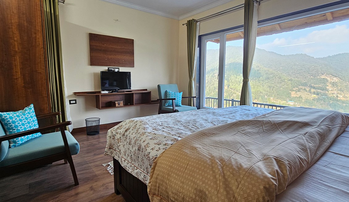 The Sage Brook - Nestled in the serene hills of Mukteshwar, The Sage Brook is an idyllic retreat designed for travelers seeking peace, luxury, and a deep connection with nature. This boutique property features two beautifully crafted cottages, each offering:Two Bedrooms: A cozy ground-floor bedroom with a common toilet and a private first-floor bedroom with an attached toilet.Self-Sufficient Living: A fully equipped kitchen in each cottage for home-cooked meals.Breathtaking Views: Overlooking the lush valley, guests can soak in sunrises and misty mornings from their private balconies.Exclusive Dining Experience: A separate dining area with an in-house cook serving fresh, homely meals.On-Site Assistance: A dedicated property manager ensures a seamless and comfortable stay.Ample Parking & Accessibility: Hassle-free parking for guests driving to the retreat.Proximity to Nature & Culture: Located near quiet hiking trails, local organic stores, charming cafés, fruit orchards, and boutique shopping spots (within 7-10 km).Whether you're a family looking for quality bonding time, a couple seeking a romantic getaway, or a solo traveler yearning for solitude, The Sage Brook is your perfect escape into nature. This Property is a prestigious partner of Ash Roomz since 2025. Ash work with hotels,resorts,Villas,Service Apartments and other type of hotels in Uttarakhand. Book Hotels with ash" u look we book" for a safe and easy booking.